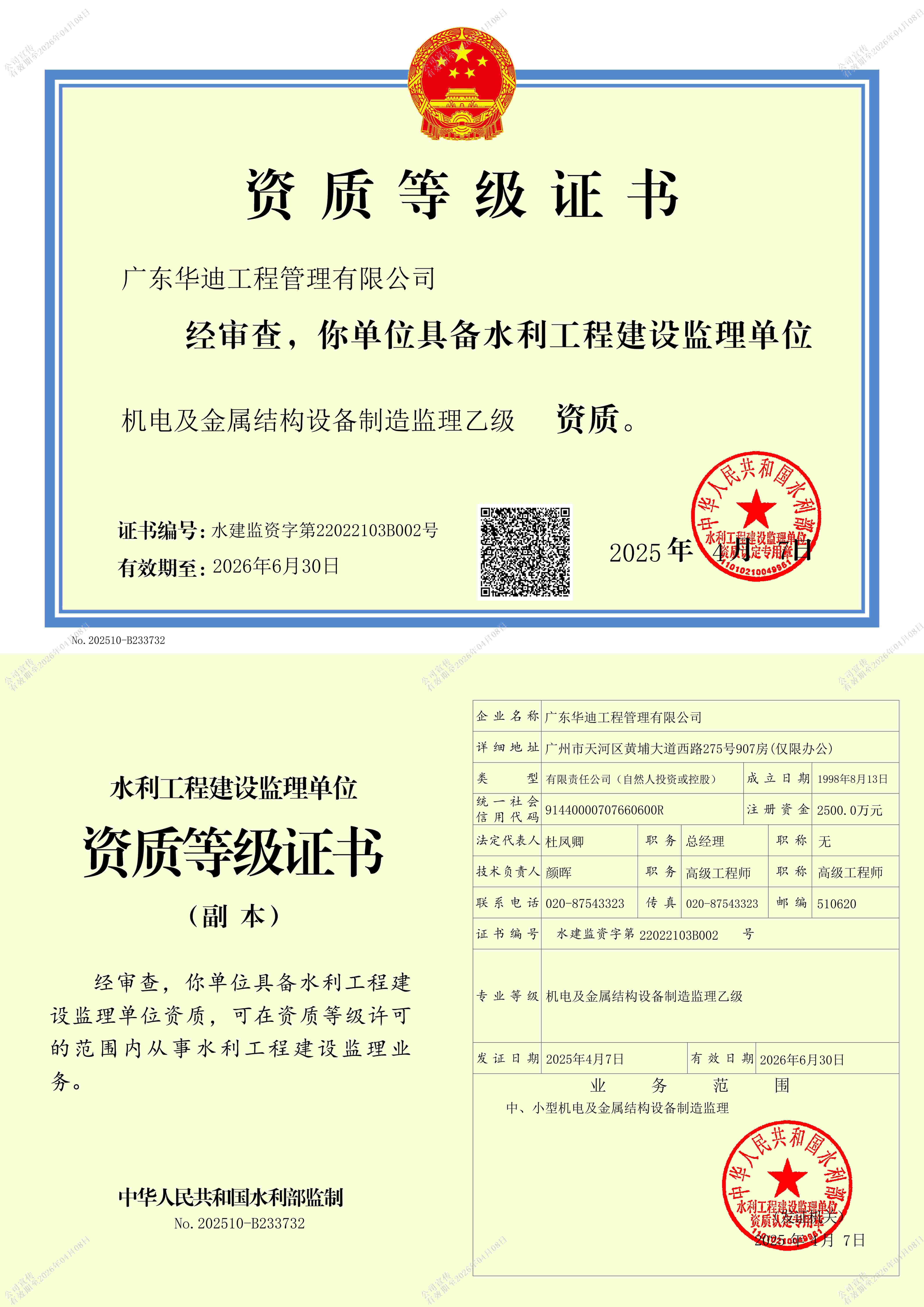 承擔(dān)所有專業(yè)工程類別建設(shè)工程項目的工程監(jiān)理業(yè)務(wù);承接各級水利工程、Ⅱ等及以下各等級水土保持工程的施工監(jiān)理業(yè)務(wù);中小型機電及金屬結(jié)構(gòu)設(shè)備制造、各類各等級水利工程建設(shè)環(huán)境保護(hù)監(jiān)理;